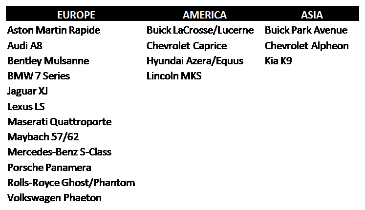 It is also called the G-Segment, but for order reasons here it is called ‘F’ segment. Corresponds to the maximum level of luxury and engines of passenger cars. It is also the top in terms of prices (though there are even more expensive sporty cars) and is more or less the referent for the latest technologies to be seen in future cars. As the market in terms of units sold is not so big, therefore the offer is very concentrated and competition is really hard: Germans rule but are now facing new competitors from Asia, where the segment is growing really fast, especially in China. The cars that belong to this segment are more than 5m long in a sedan body type, normally for 4 passengers but with focus on the back seat as the owner or main target of these large sedans is a rich person who normally does not drive. These cars are normally used by chiefs of states, royalty, celebrities or important CEO around the world.