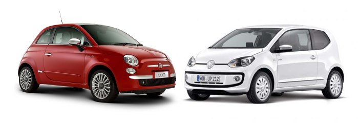 The Fiat 500 has to compete with not only one member of VW family but 3: the VW Up! 3d, Seat Mii 3d, and Skoda Citigo 3d