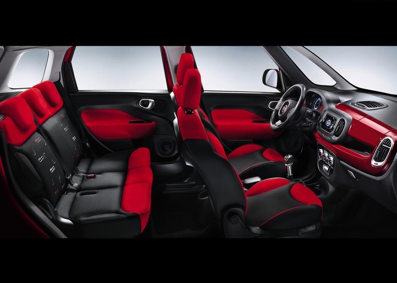 Fiat released more official pictures and all information about its latest product, the compact minivan Fiat 500L. The official presentation will take place today in Turin at the Officine Grandi Reparazioni, 5 years later after the awesome presentation of Fiat 500 also in Turin. According to Fiat press, this car will be distributed in more than 100 countries including the US where will arrive in 2013. They also revealed some details of the B-Segment MPV: 4.15 m long and 1.78 wide. The trunk has a capacity of 400 liters and thanks to ‘Fold&Tumble’ system it can be enlarged up to driver’s seat with flat floor. There are more than 1500 possible configurations for the room inside and for example if the user wants he can recline front passenger seat and integrate it to the trunk and therefore have a total lenght inside of 2.4m. Regarding engines Fiat comes up to ‘leggerezza’ idea or lightness in the sense that they offer ‘small’ engines with interesting power and very low emissions and fuel efficiency. Two petrol engines, 0.9 TwinAir with 105 hp and a 1.4 with 95 hp, and one turbodiesel 1.3 Multijet 2 with 85 hp. According to Fiat the TwinAir 105hp has a emission record of only 112 g/km, which is very slow compared to other cars and taking into account that is a minivan for 5 people. In 2013 there will the time for Methane, Natural Power with TwinAir system.