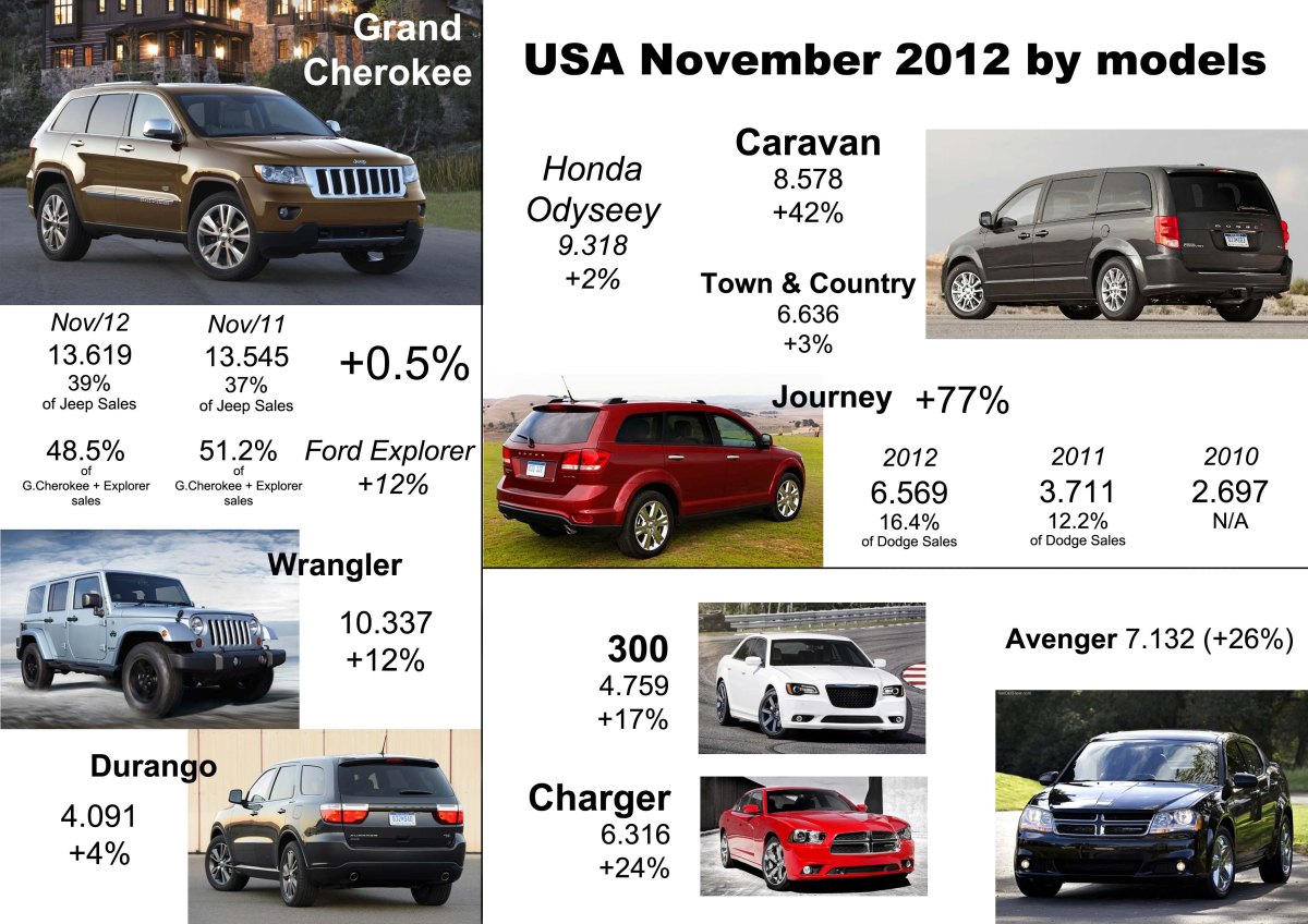 Excellent performance of Dodge models (except for the Dart). Grand Cherokee is not the leader of the segment anymore, while the two large MPV from the group beat the leader of the segment in November. Source: Good Car Bad Car