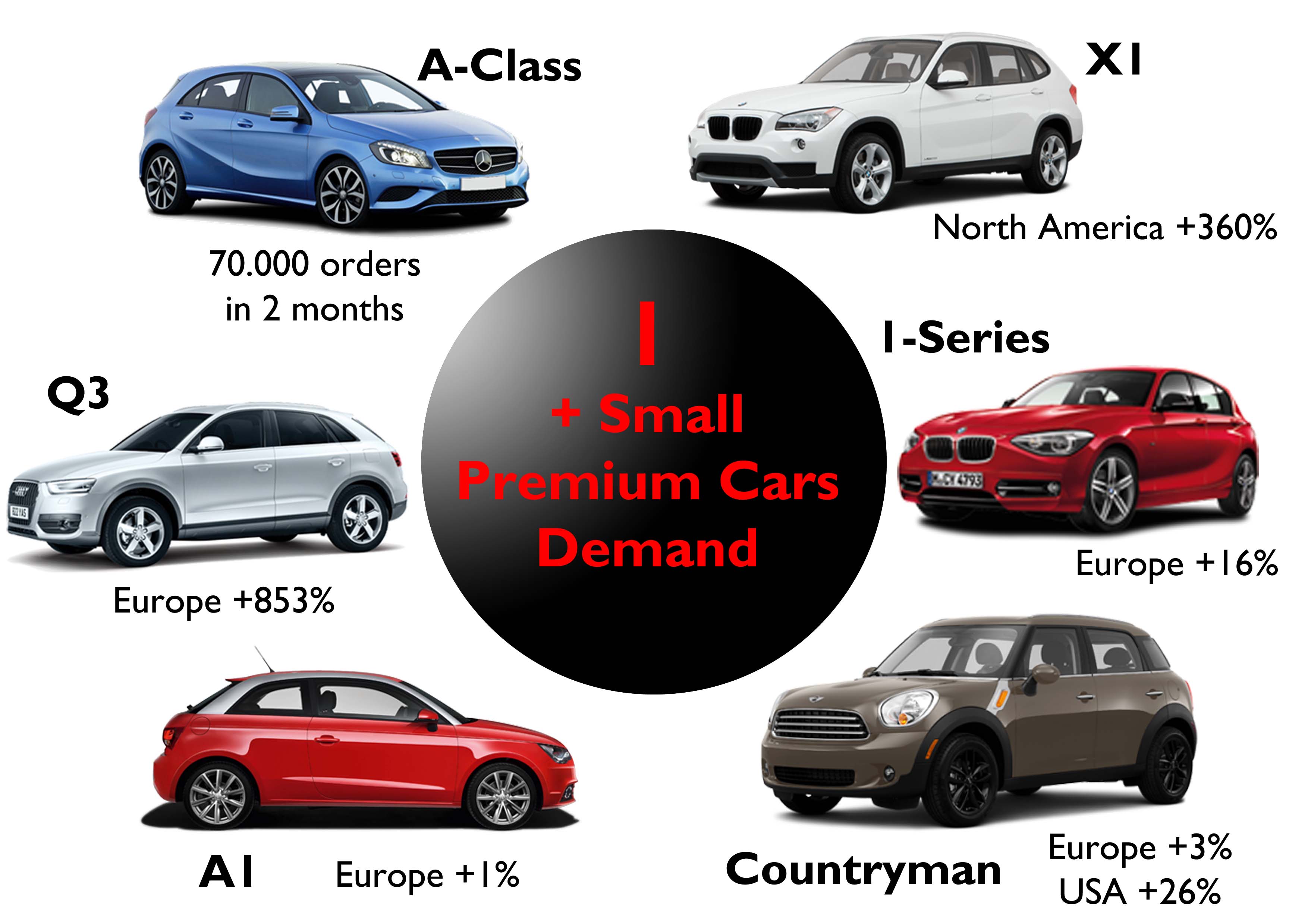 Demand for premium small cars in 2012. Germans are having big success in lower segments. Source: http://www.bestsellingcarsblog.net, Good Car Bad Car