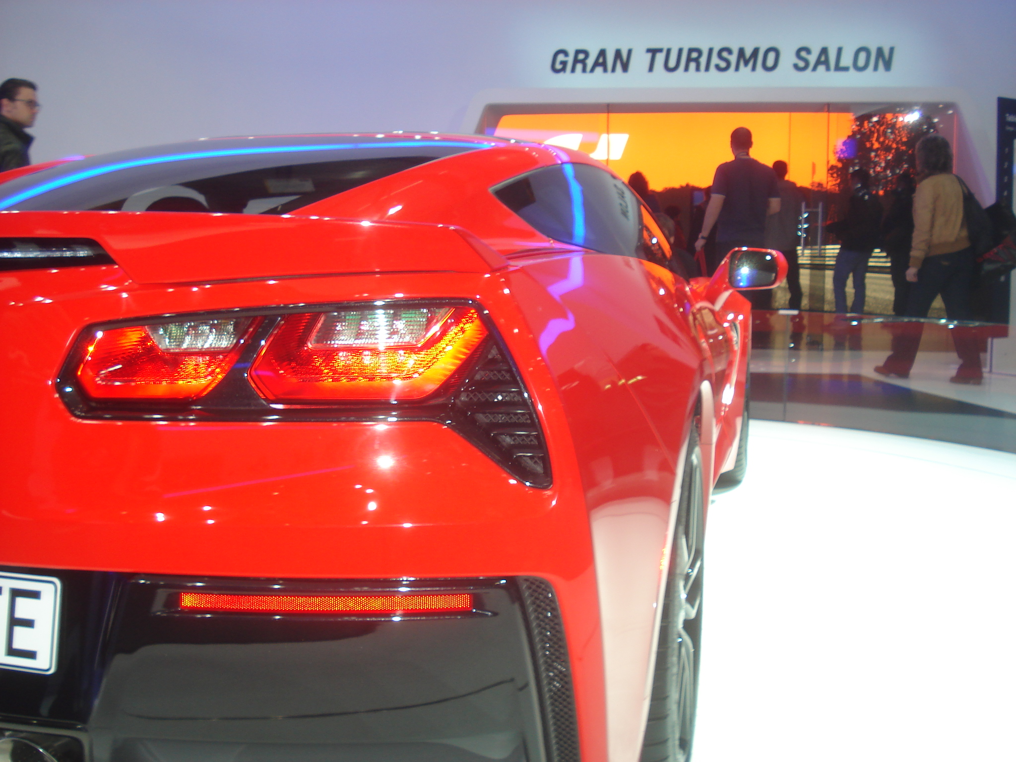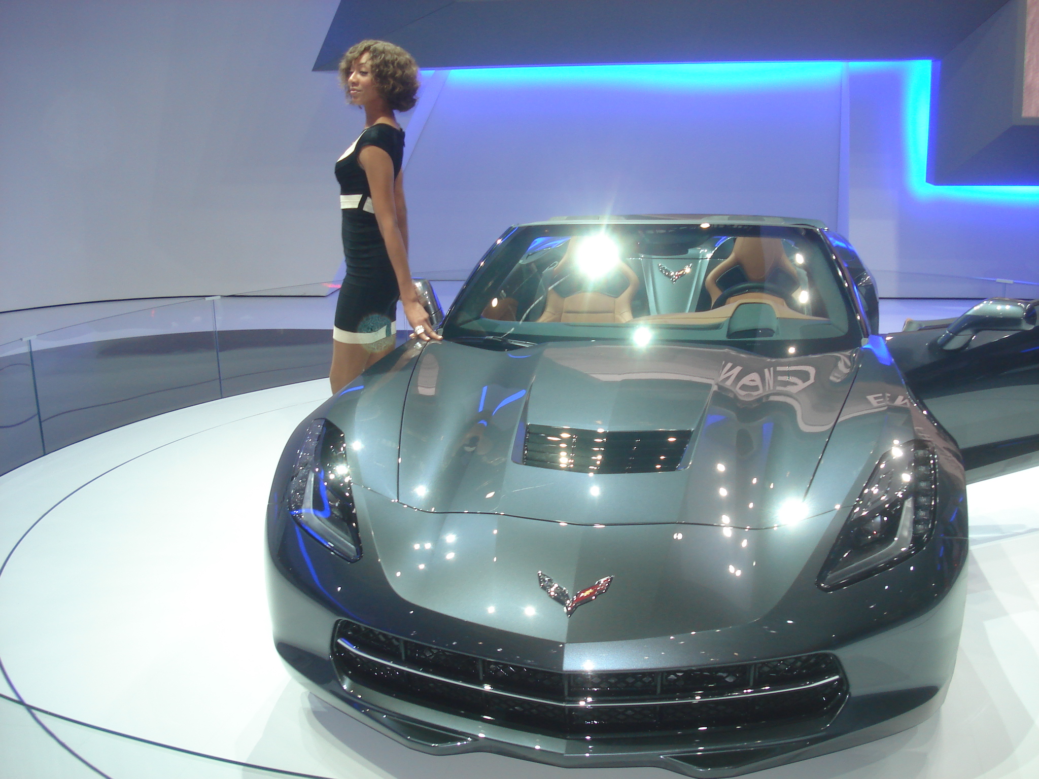 The new Corvette shines. It is very nice in both versions, cabrio and coupe. However, it doesn’t gather as many people as its European rivals. Nice stand.
