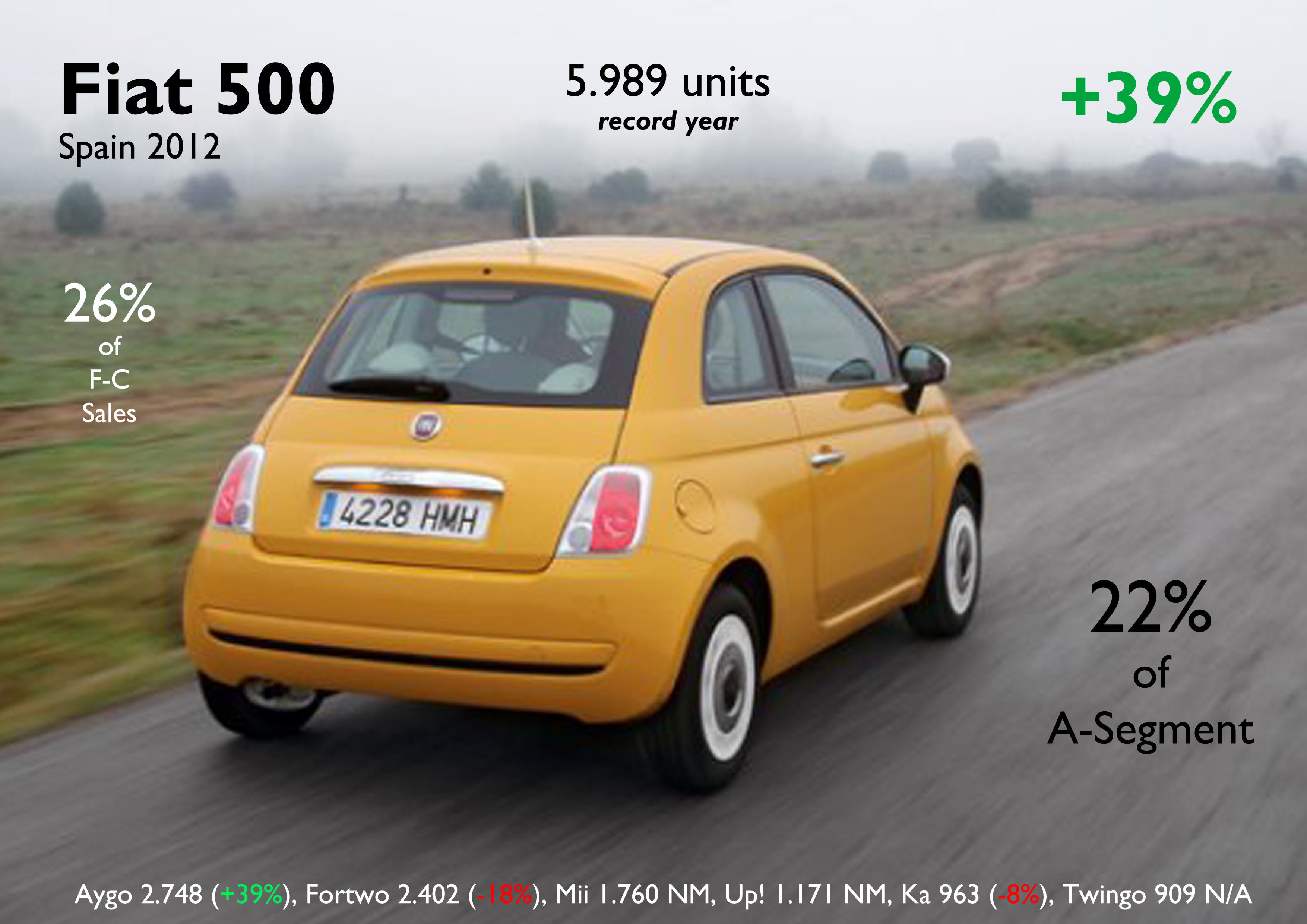 After 5 years in this market, the 500 got a record year in 2012 with almost 6 thousand units, more than 2 times its immediate competitor. Photo by: Autobild.es. Source: FGW Data Basis, ANIACAM, Best Selling Cars Blog