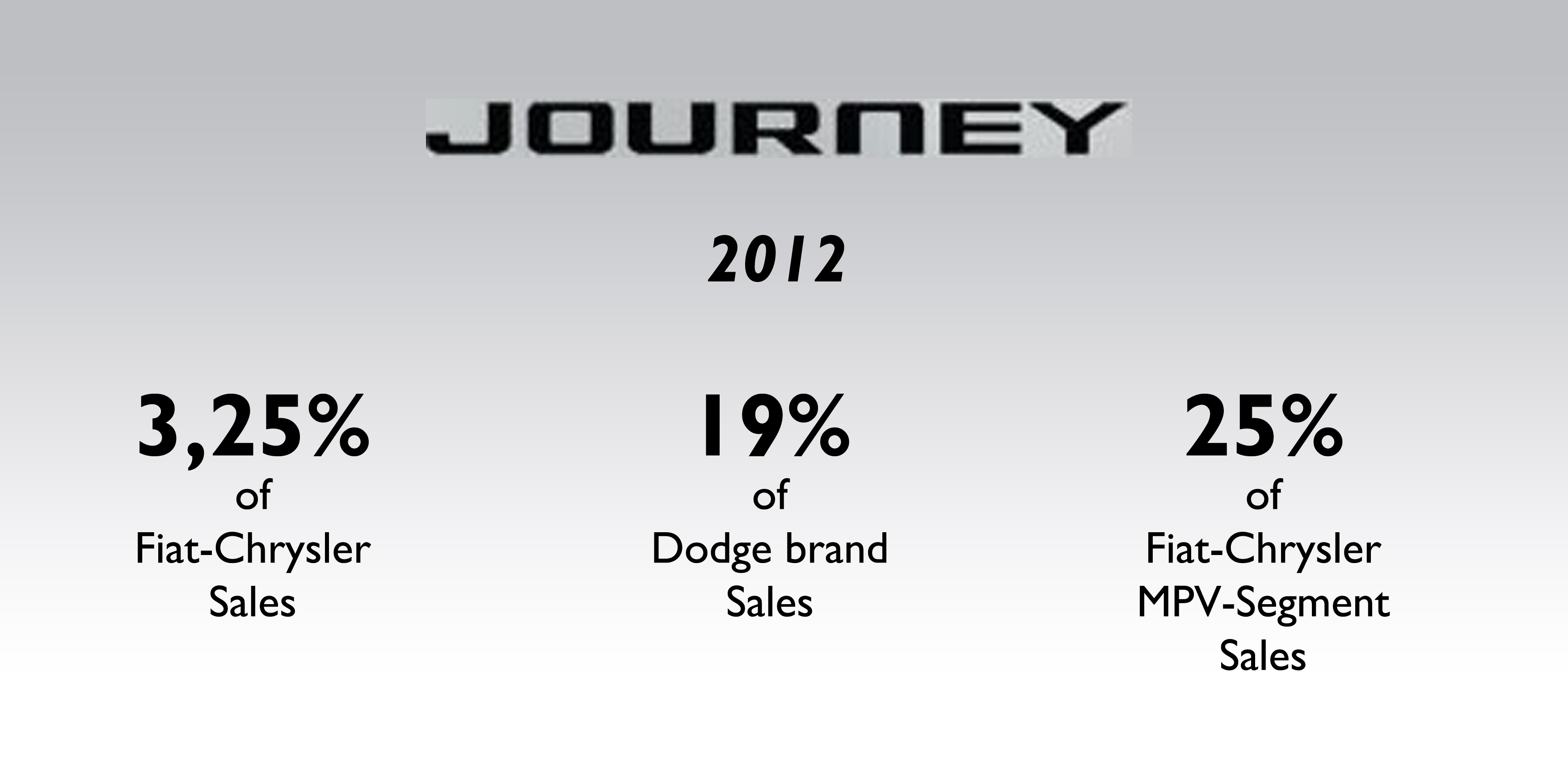 1 out of 4 MPVs sold by Fiat-Chrysler (all kind of MPVs, from the small 500L to the big Town & Country), was a Journey. Source: see at the bottom of this post.