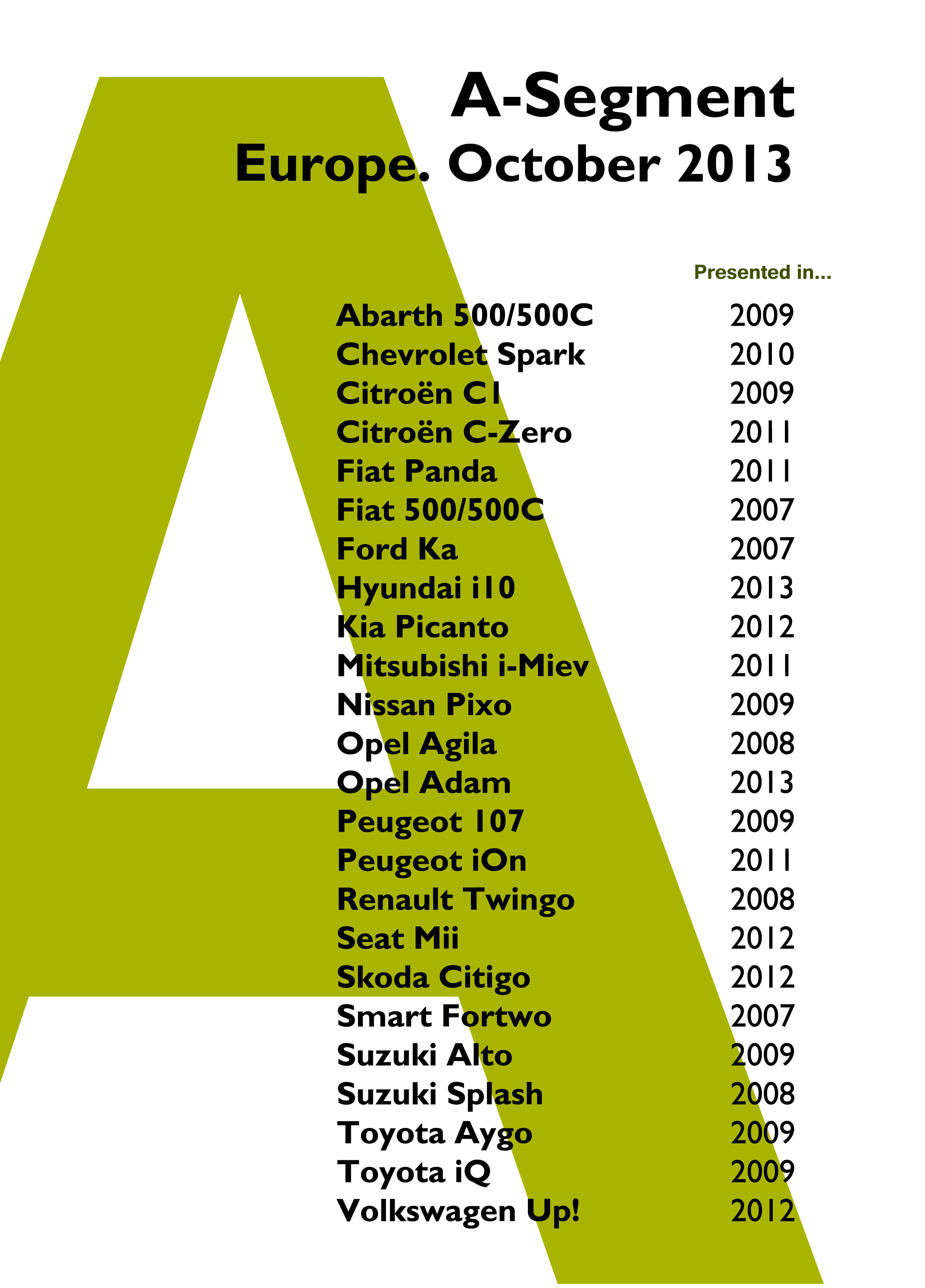 They are also called the city-cars or the mini-cars. These cars make part of the first segment analyzed that will be published in a dedicated page called ‘My Segmentation’. In Europe this segment is divided in 4 categories: the 3 doors, 5 doors, mini-A, and others.
