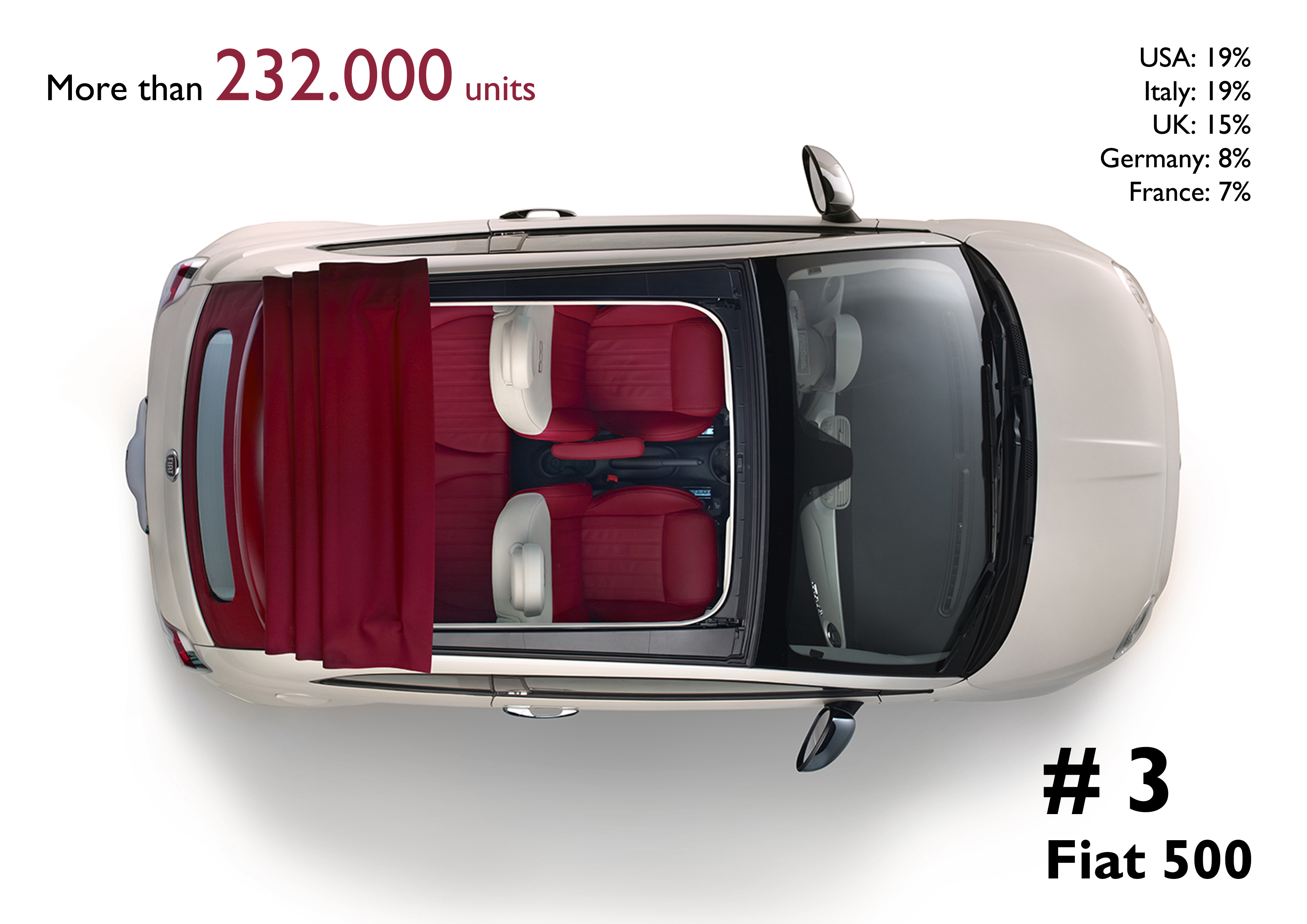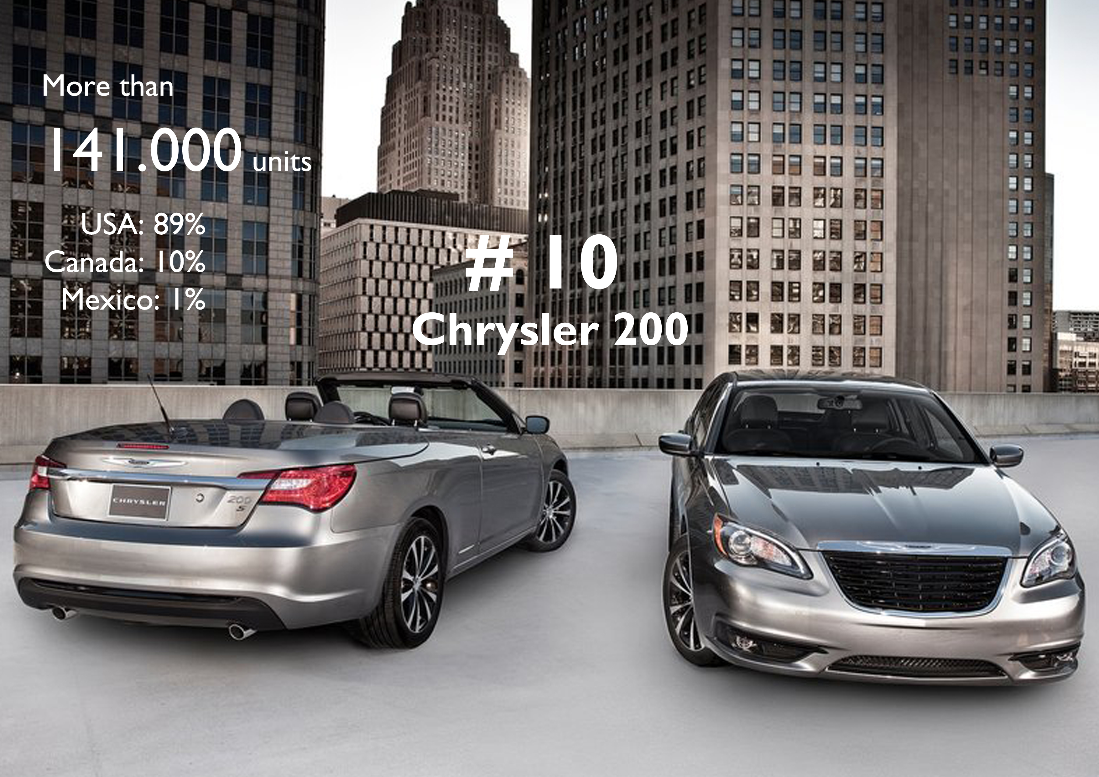 Finally, the top-10 is completed by the Chrysler 200, which had a terrific year thanks to the US market. 5 Chrysler Group models and 5 Fiat Group models compose the list.