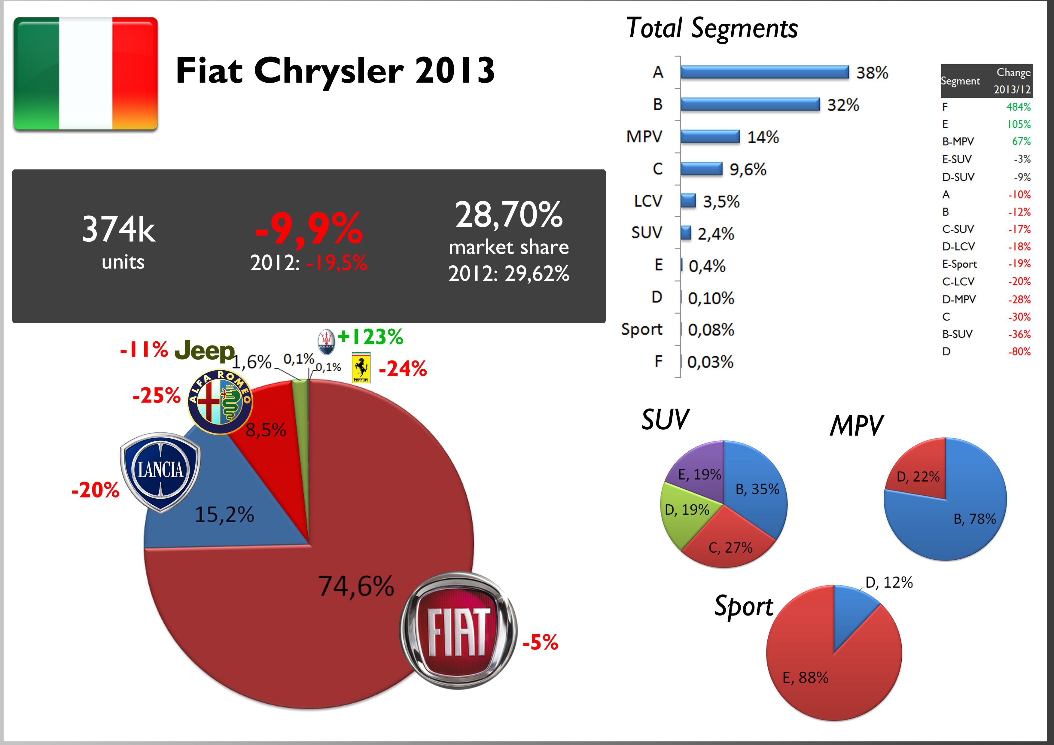 - Once again the Fiat Freemont was FCA’s product with the highest share within its segment. The Panda now controls 40% of A-Segment (against 47% in 2012).