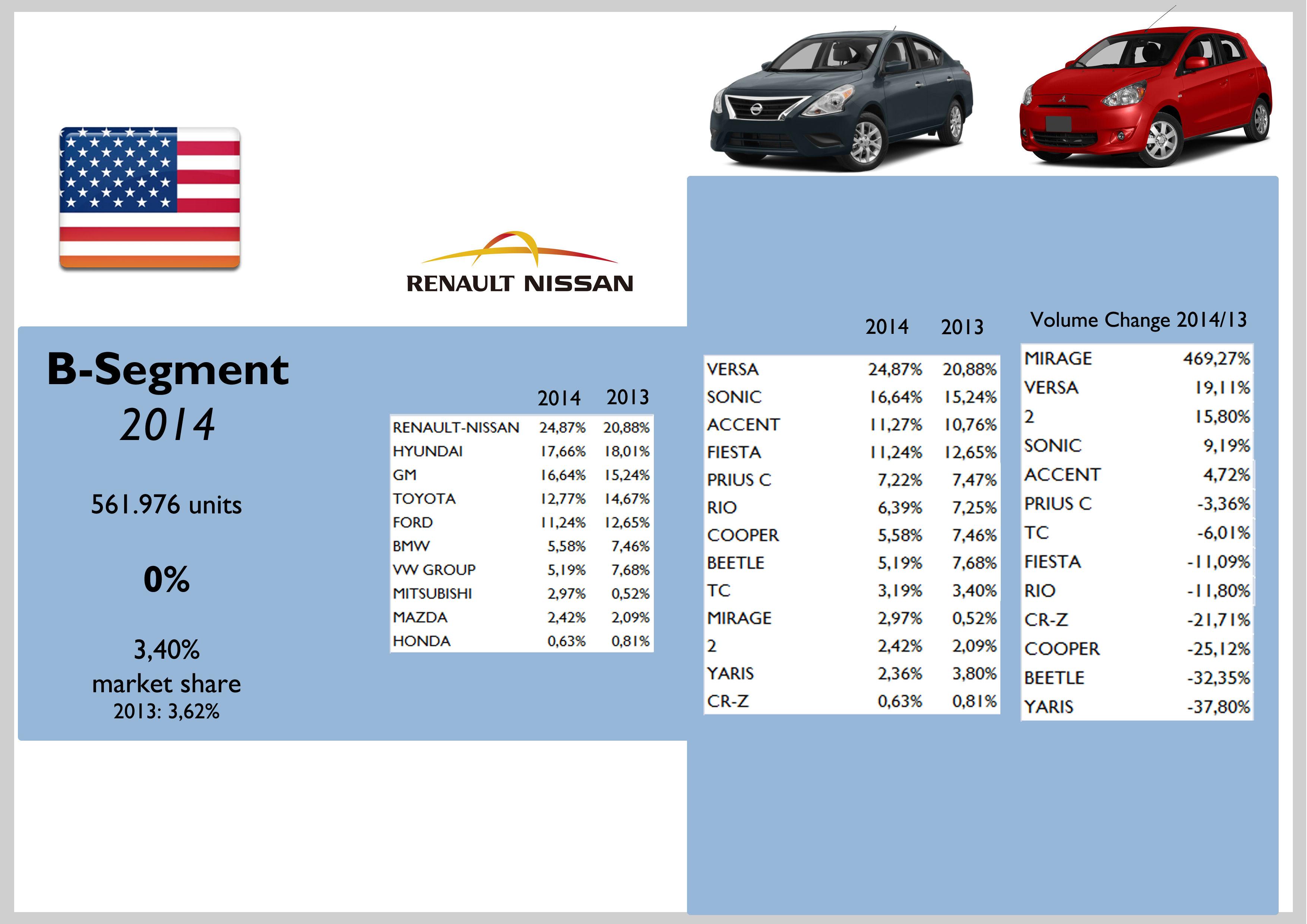 - Subcompact cars sales remained stable last year with more than 550.000 units. Renault-Nissan lead again the segment thanks to the popular Versa sedan.
