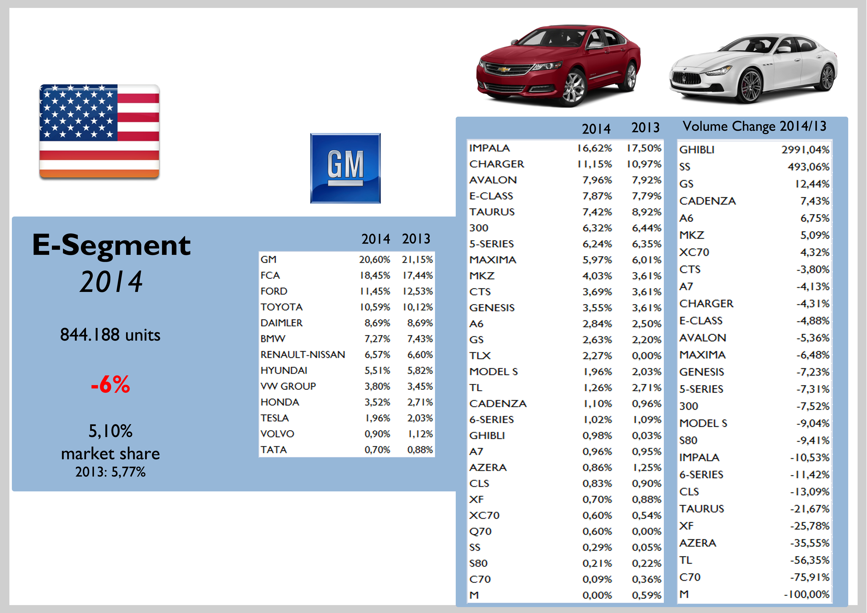 - Low gas prices means more demand for big cars: SUVs and Pickups demand grow more than overall market. Passenger car segments (from A to F) underperformed the market.
