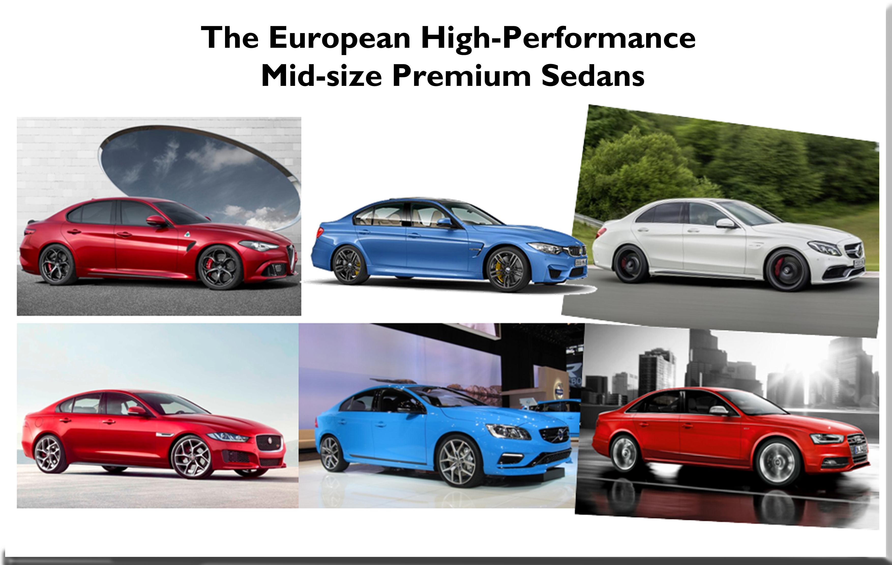 • Gracias Luis. Todos estos sedanes hacen parte del segmento D europeo y por lo tanto, independientemente del motor y precio, son rivales. Ya si entramos en el detalle, logicamente el Audi, Volvo y Jaguar estan un escalon abajo, mientras que el M3 y el C63 si son rivales directos. Un saludo, JF