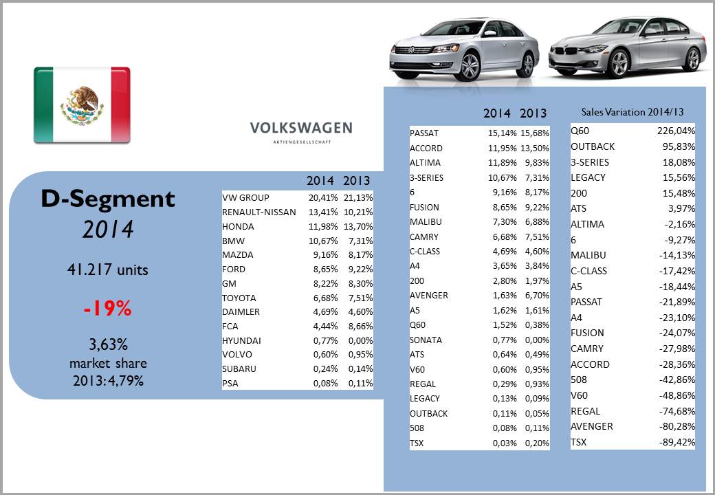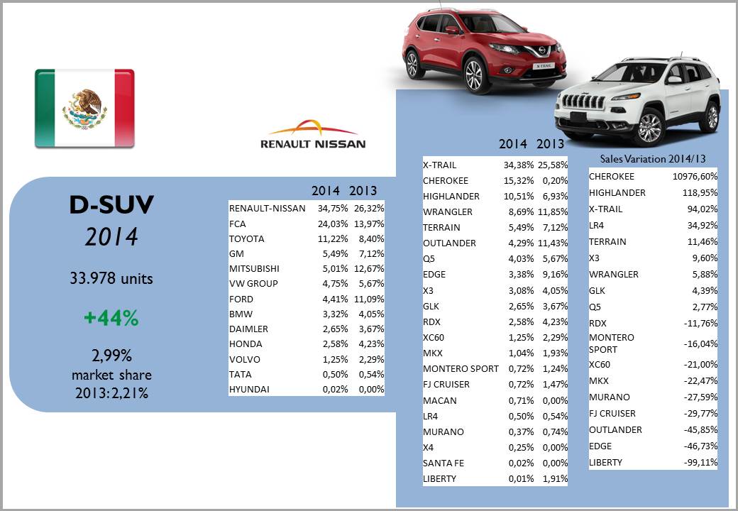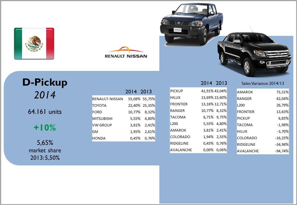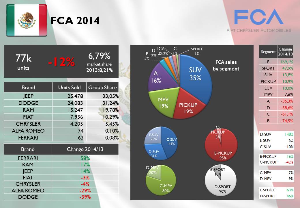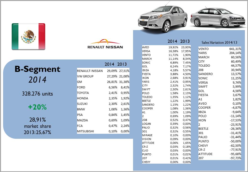 Mexican new car sales are back to the positive trend, with sales reaching 1,135 million units, up 7%. The growth drivers were the sub-compact cars (the most popular segment), and SUVs (mostly because of the mid-size SUVs). Thanks to the popular Nissans, the alliance Renault-Nissan controls the largest part of the market with 28%. GM comes next, along with VW, Ford and FCA. As it happens in Brazil, most of the best-selling car groups have factories in the country. FCA group posted a negative growth due to Dodge brand, which was negatively affected by the decision of Hyundai of stopping the partnership and distribute its products directly. Actually the Hyundai i10, rebadged as Dodge i10 was the group’s 4th best-selling nameplate. Ram trucks and Jeep SUVs registrations soared and counted for more than half of the group total sales. Mexico was another market to positively receive the new Jeep Cherokee.