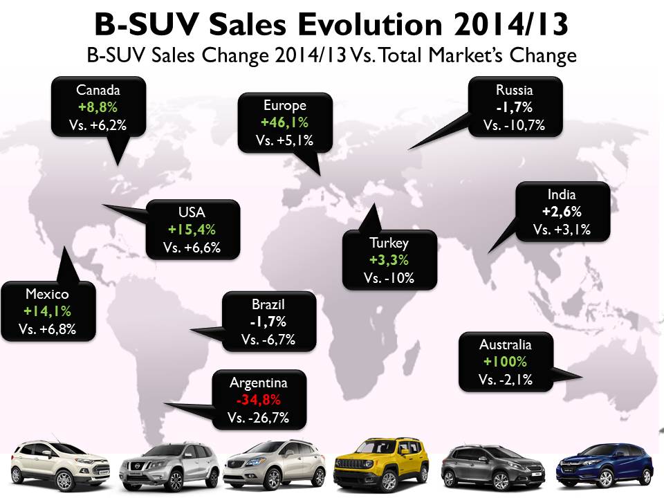 Last year the B-SUV sales registrations outpaced overall industry in many markets. It’s a global trend which is being properly used by many automakers. Source: JATO, Goodcarbadcar, FENABRAVE, Autoblog.com.ar, AMDA, bestsellingcarsblog.com