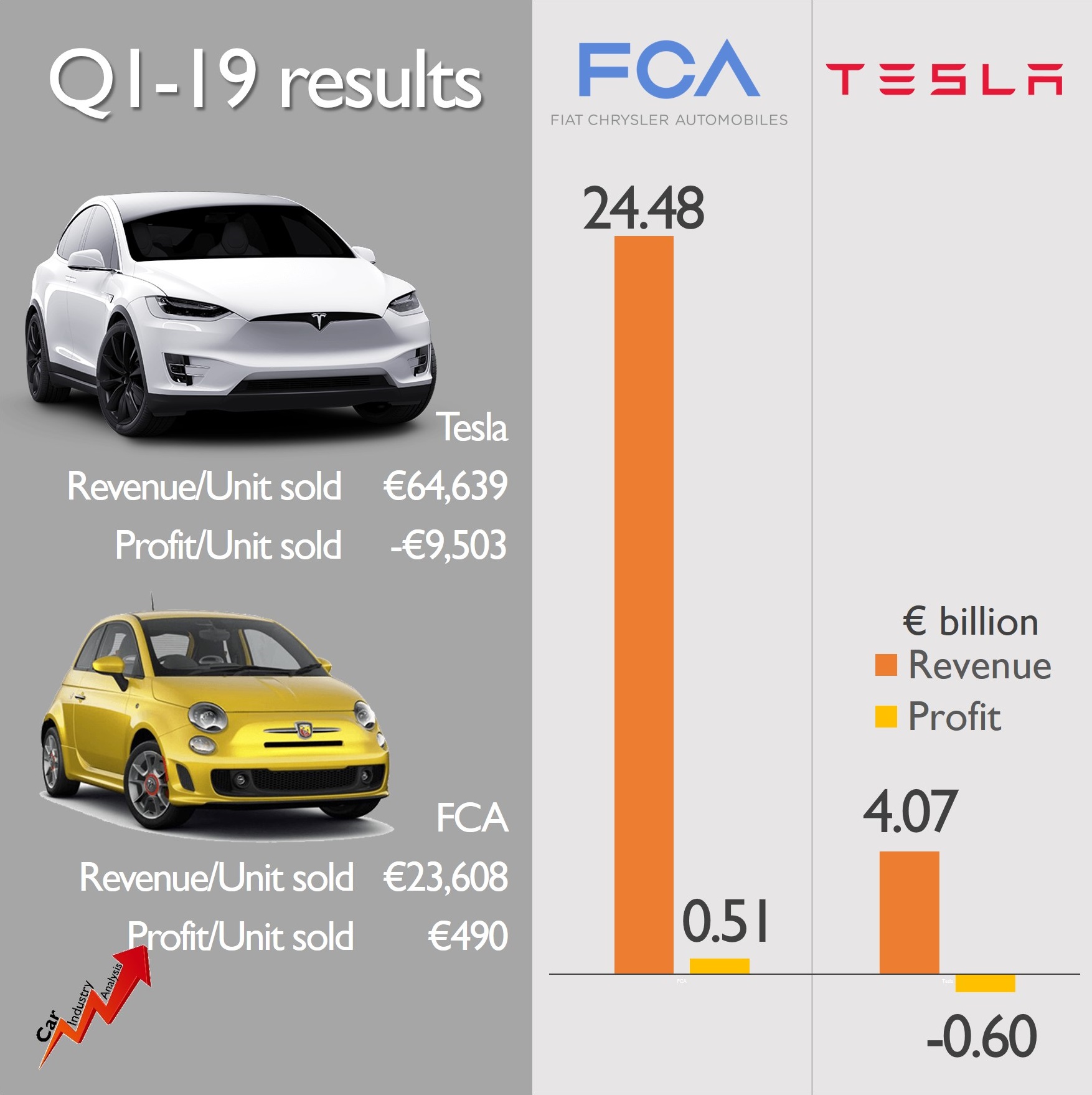 Despite all the difficulties that FCA is dealing with nowadays, the company is still attractive enough. In one hand, it has 20.3 billion euros in cash*. Unlike Tesla, the guys of Fiat Chrysler earned 508 million euros in Q1 2019, although the margin fell dramatically from 3.7% in Q1-18 to 2.1% in Q1-19. Tesla might have more growth potential than FCA, but the latter sits on a more comfortable financial situation.