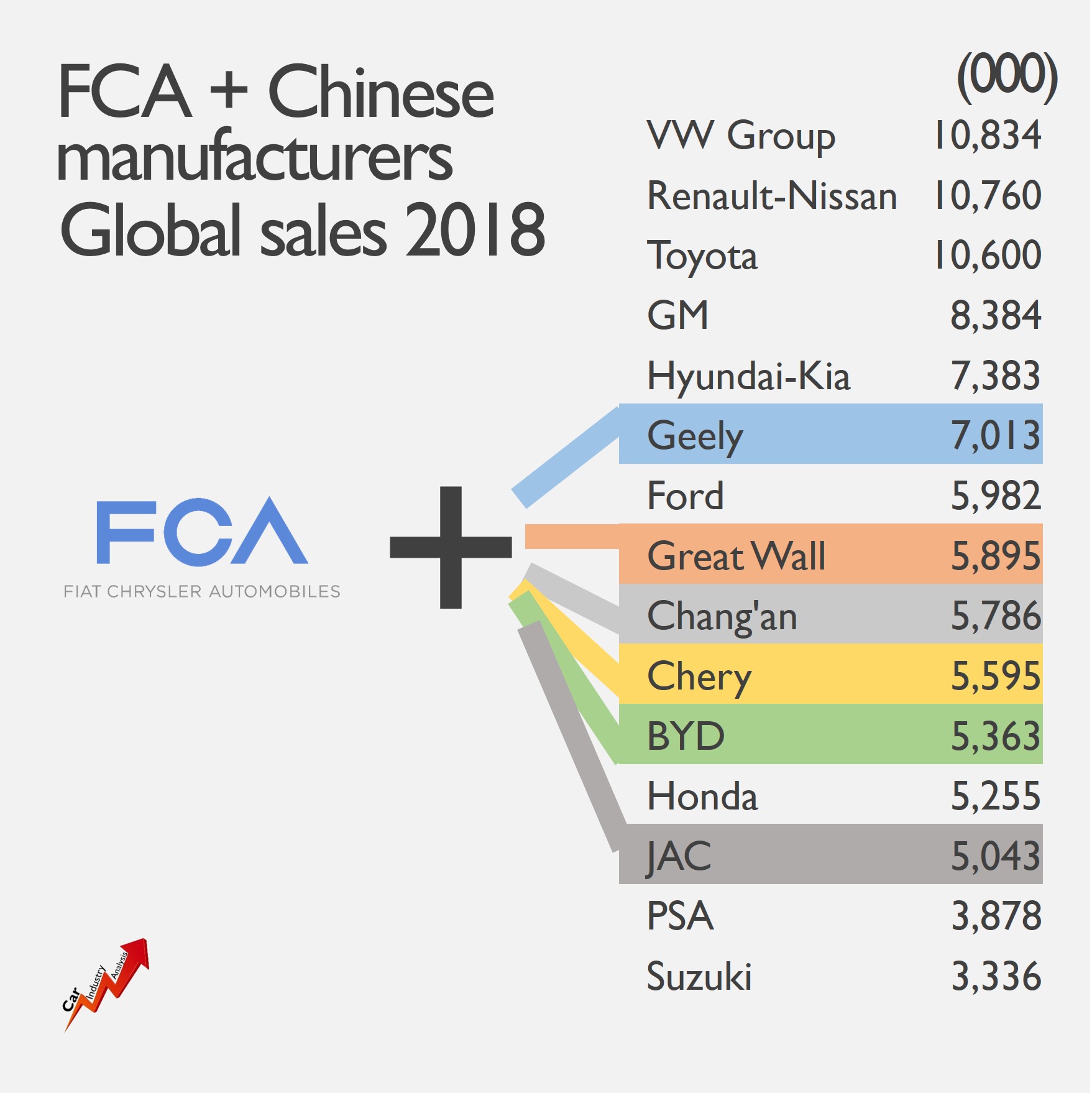 Who to marry? Geely, Chery, Chang’An, BYD, JAC or Great Wall could be among the candidates to establish collaboration with FCA. The Italian-American maker would win direct access to China by playing as a local, while the Chinese could use FCA’s network to sell their cars in Europe and USA. At the same time, FCA would benefit from the Chinese EV know-how and incentives allowing it to reduce the current big gap with its peers.