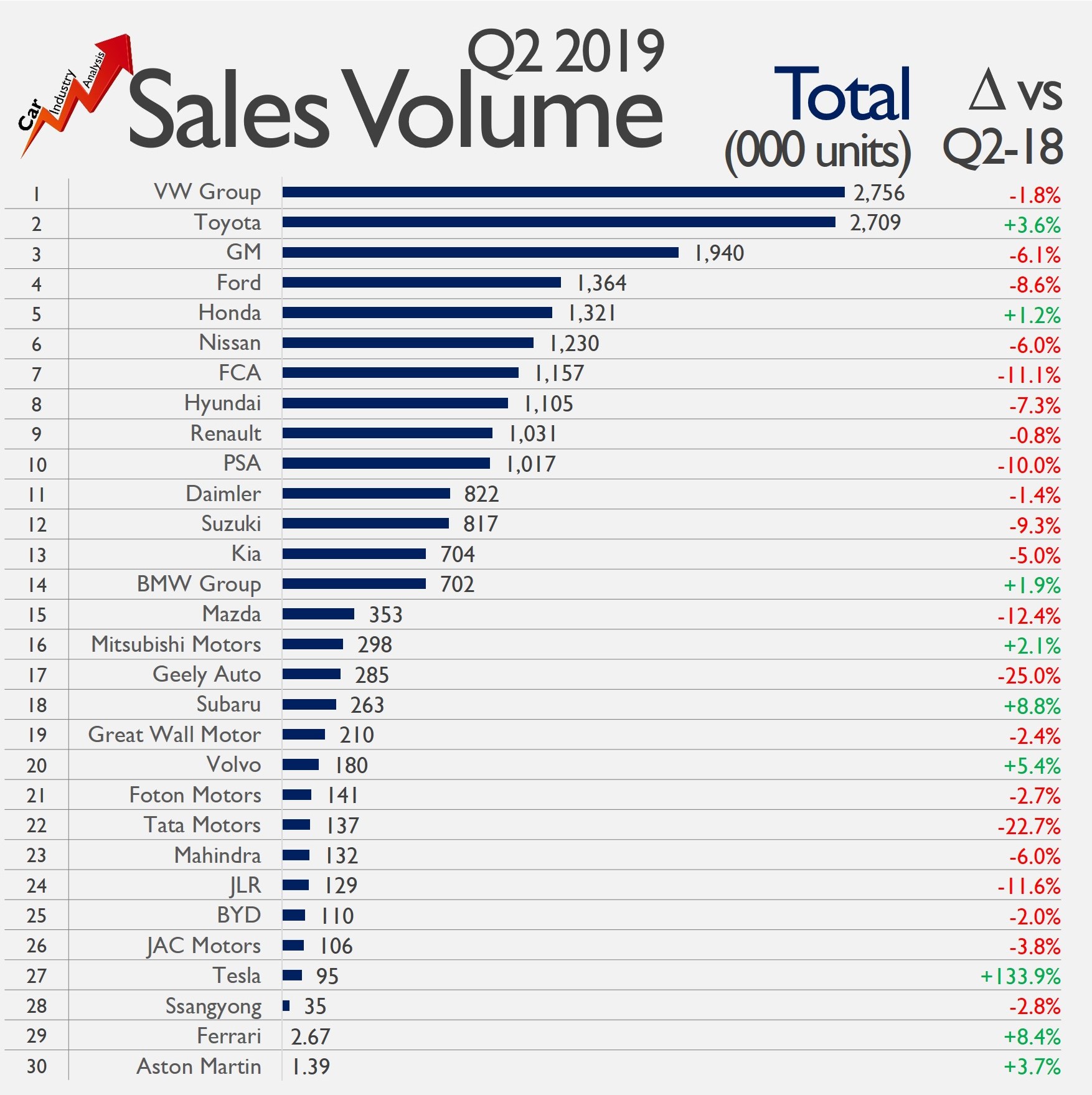 When including all the markets and players in H1, the situations is quite dramatic. A total of 44.75 million vehicles were sold in H1 2019, down 6.8% compared to the first half of 2018.