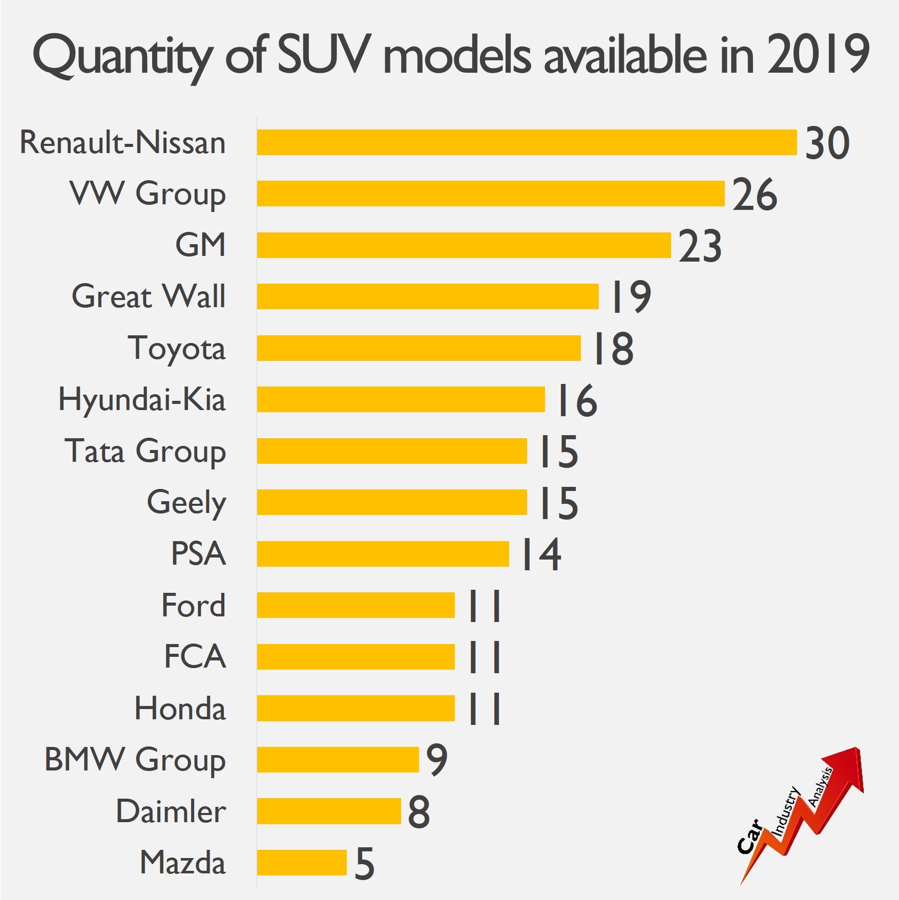 In the other hand, there are also challenges regarding the very small offer. The group has 11 different SUVs in its product line up. This is quite a very small quantity if compared to some of its rivals. Renault-Nissan offers 30 SUVs, and General Motors has 26 different SUVs in its lineup. With only 11 models, it is difficult to gain traction.