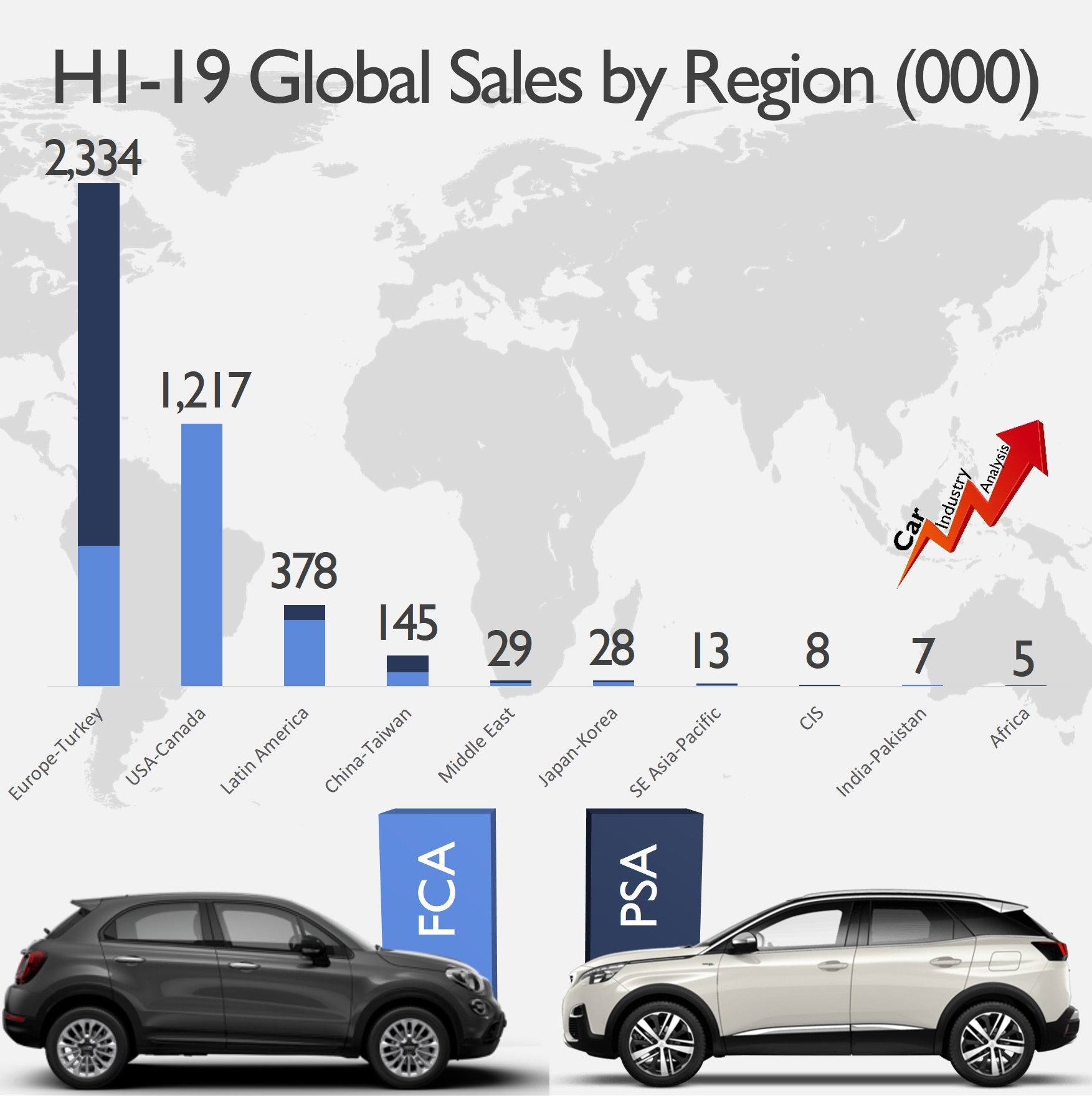 The main reason for the missing volume is the little presence of both companies in Asian markets. If FCA’s problems in this continent are quite known by the industry, PSA is not in a very different situation. The French manufacturer, partially owned by Dongfeng, struggles to keep alive in China, where its sales dropped by 53% in H1 2019. They sold 77,700 units or 11,000 more than FCA. For comparison reasons, VW Group sold 2 million vehicles.