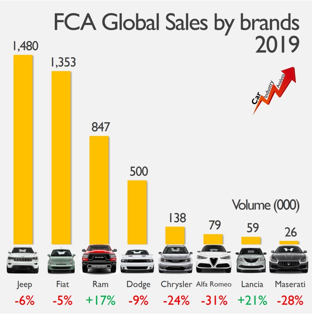The challenge ahead is to keep profits with sales shrinking at the premium brands and stalling sales at Jeep. Ram is due to become the only driver of profits in the short term but it is brand with a high dependence on one market (USA/Canada counted for 95% of its global sales in 2019). Therefore, the situation is a bit complex now considering the negative effect that Covid-19 outbreak is already having in the industry.