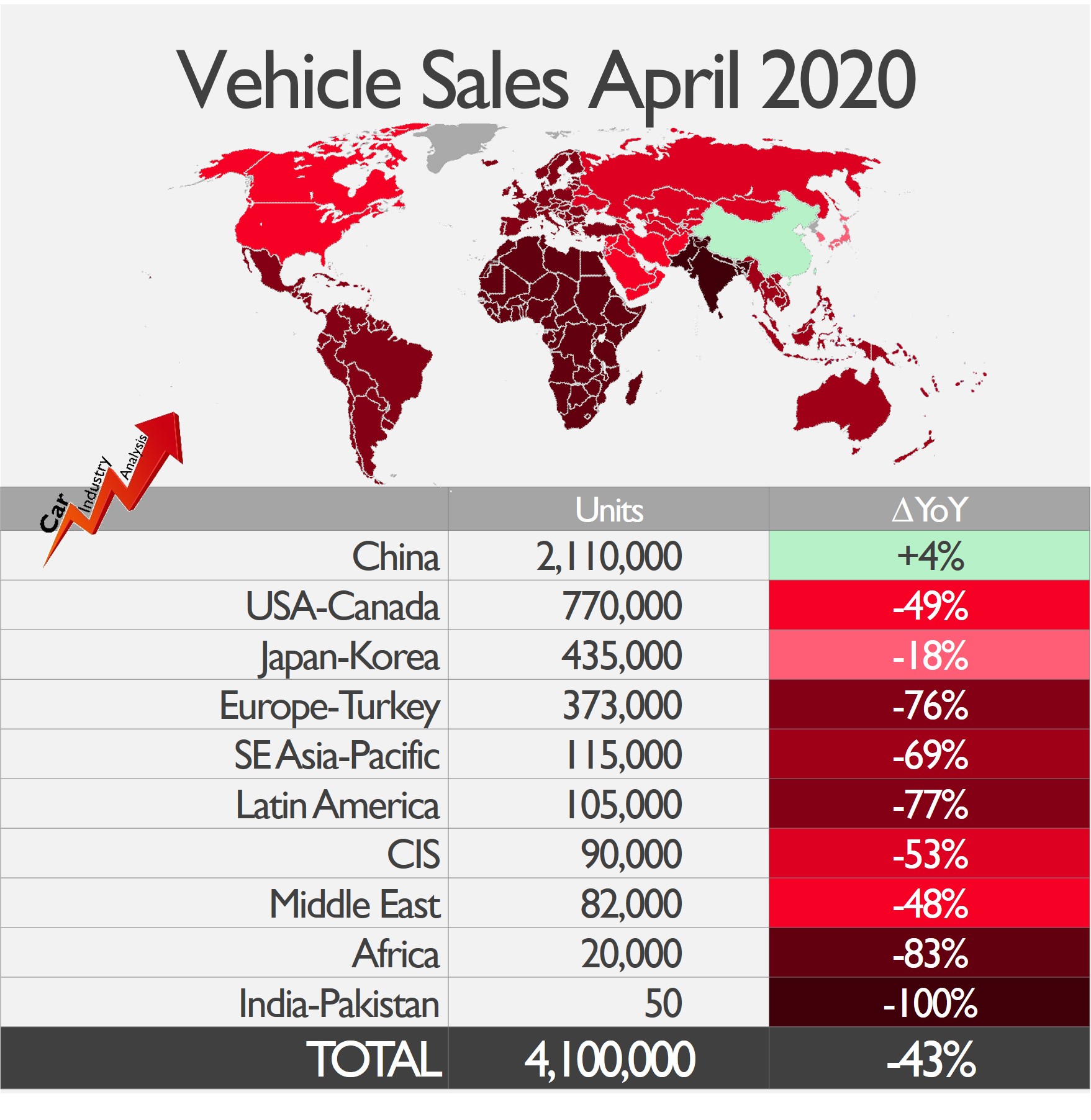 The auto industry is one of the main victims of the COVID-19. As expected, global vehicle sales fell by 43% in April to only 4.1 million units, or 3.1 million less than in April 2019. The lockdowns all over the world, the panic among consumers and the issues with unemployment generated the worst monthly decline over the last 50 years. But the worst is yet to come.