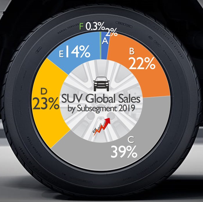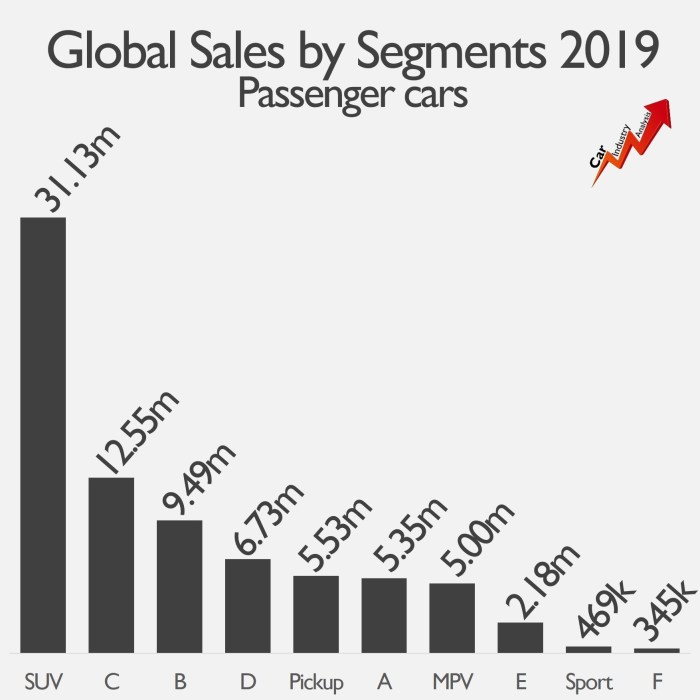 The popularity of SUVs continued in 2019. These vehicles counted for 39% of global passenger car sales. Volume totaled 31.13 million units, up by 3% compared to 2018 figures. It was one of the only two segments that registered an increase.