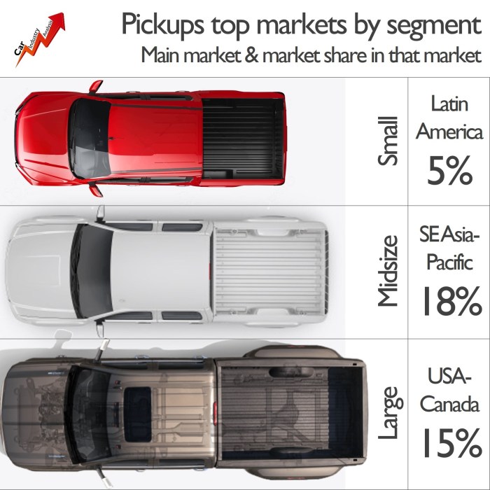 In addition to the strong position in North America, these vehicles are also very popular in Latin America and South East Asia. In fact, these three markets represent more than 90% of global pickup sales. Ford, GM and FCA lead the segment thanks to their strong presence in USA and Canada.