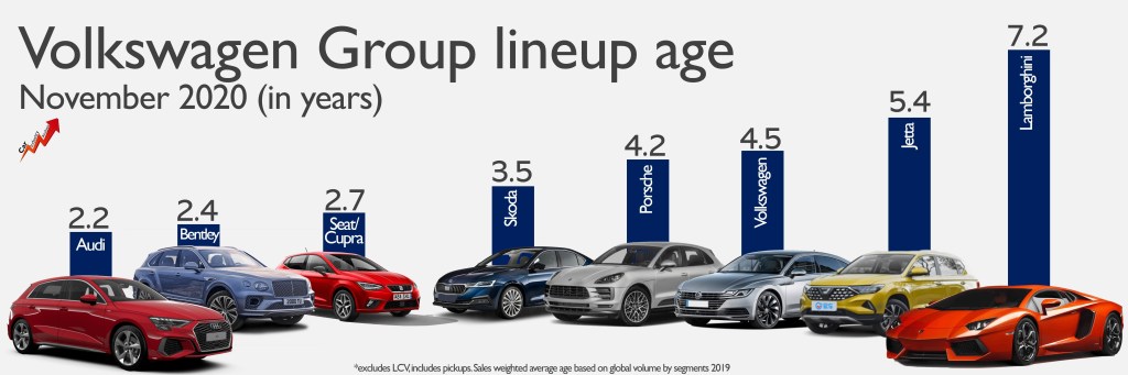 Volkswagen Group and its 13 brands managed to post an average of 4 years and a bit more than 4 months. This is remarkable, considering that this German OEM has a current offer of 95 different models around the world.