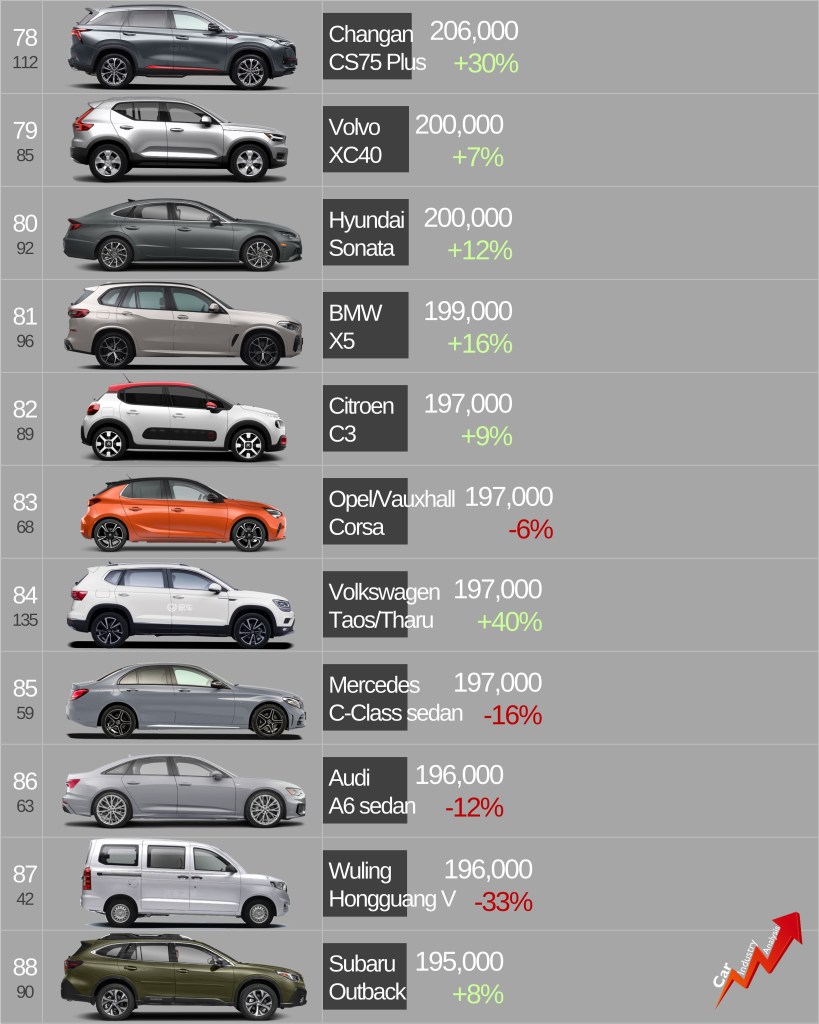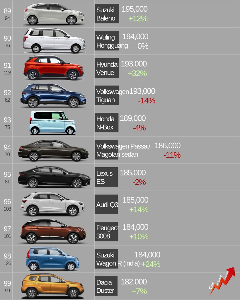 Note: this ranking splits the models by bodytype and brand, with the exception of Opel/Vauxhall and Suzuki/Maruti.
