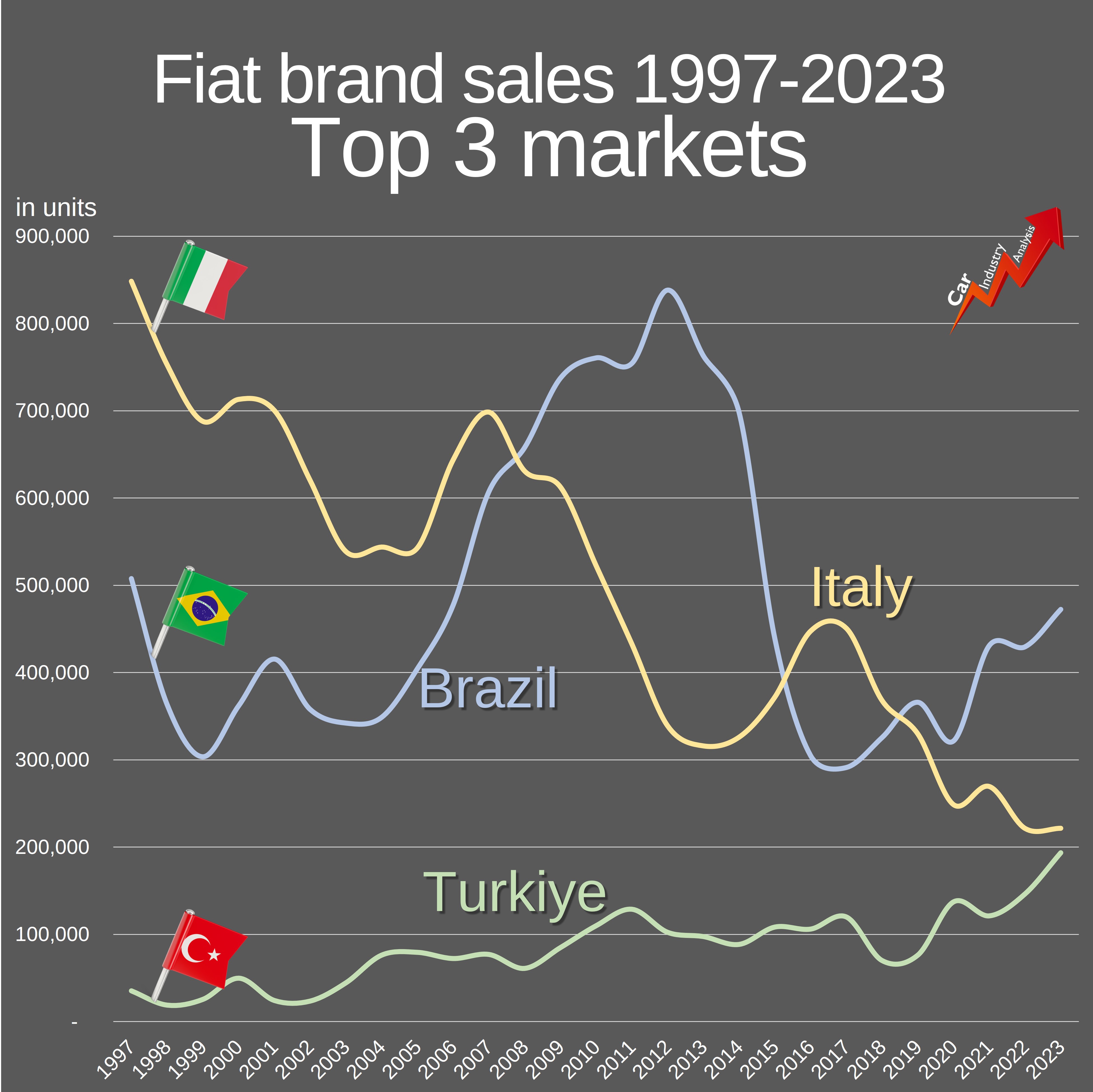 The reasons for the accelerated growth of Fiat in Turkiye in 2023 are different from the ones in Brazil. The automotive market has become a safe sector of the economy for those who don’t want to lose money for the devaluation of the Turkish lira. Many people are buying new cars because they can resell them at higher values. Fiat is the leader there and is not exempt from this phenomenon. Last year, Fiat sold a record of 193,200 units in Turkiye, or just 28,300 units less than what it did in Italy.
